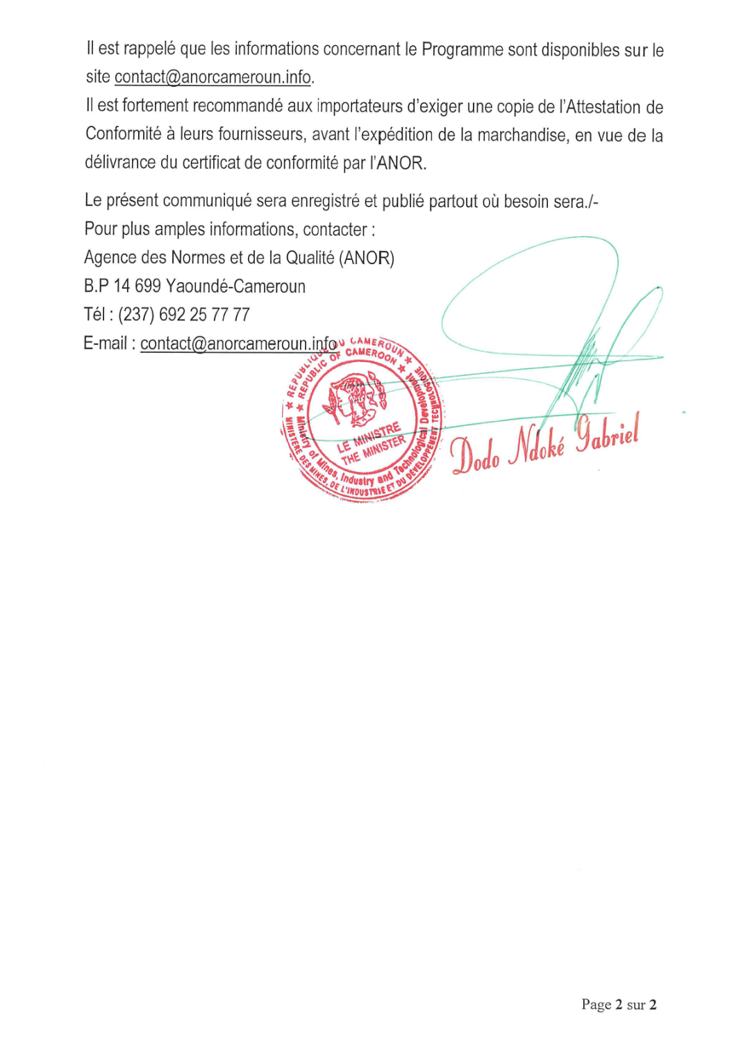 ATTESTATION DE CONFORMITEREPUBLIQUE DU CAMEROUN